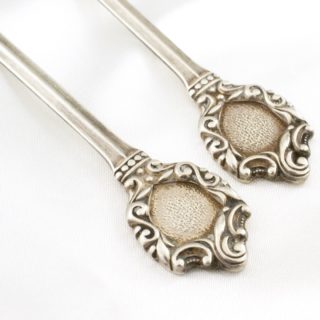 • 商品状態:古董美品。见擦痕・脏迹・腐蚀。其中一把调羹尖端的边缘部见弯曲。