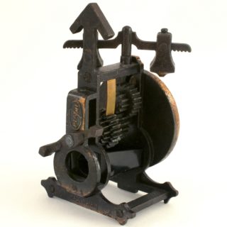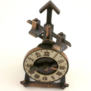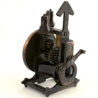 - 商品品相:古董极美品。见擦痕・脏迹。转动时针或反面的杠杆,铜板因齿轮碰撞发出卡里卡里声。