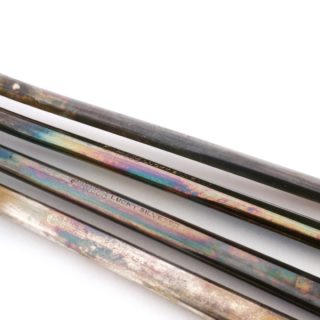 • 素材:银 有制作工坊商标刻印和「LUCKY SILVER」刻印。其中2把「LUCKY SILVER」后面有像「50」的刻印、但是不是「50」不能正确判读。